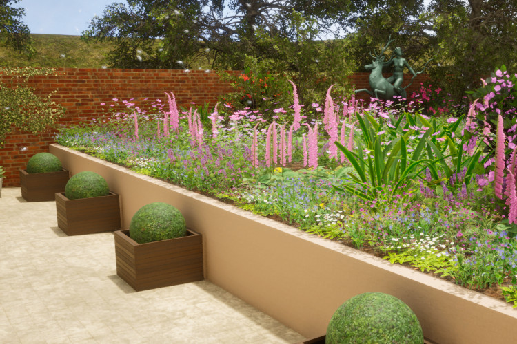 This garden was designed to showcase a variety of sculptural details, surrounded by a loose planting scheme.